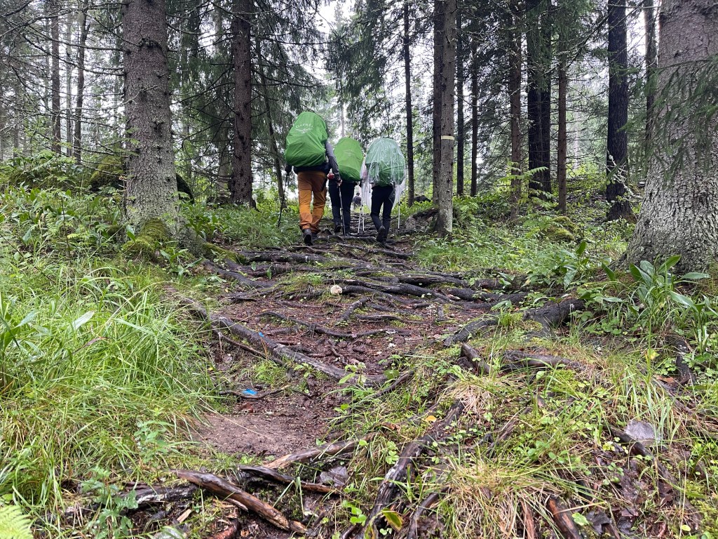 Matkan varrella on polutonta maastoa, nousuja ja laskuja tuntureilla, kosteikkoja ja suoalueita.